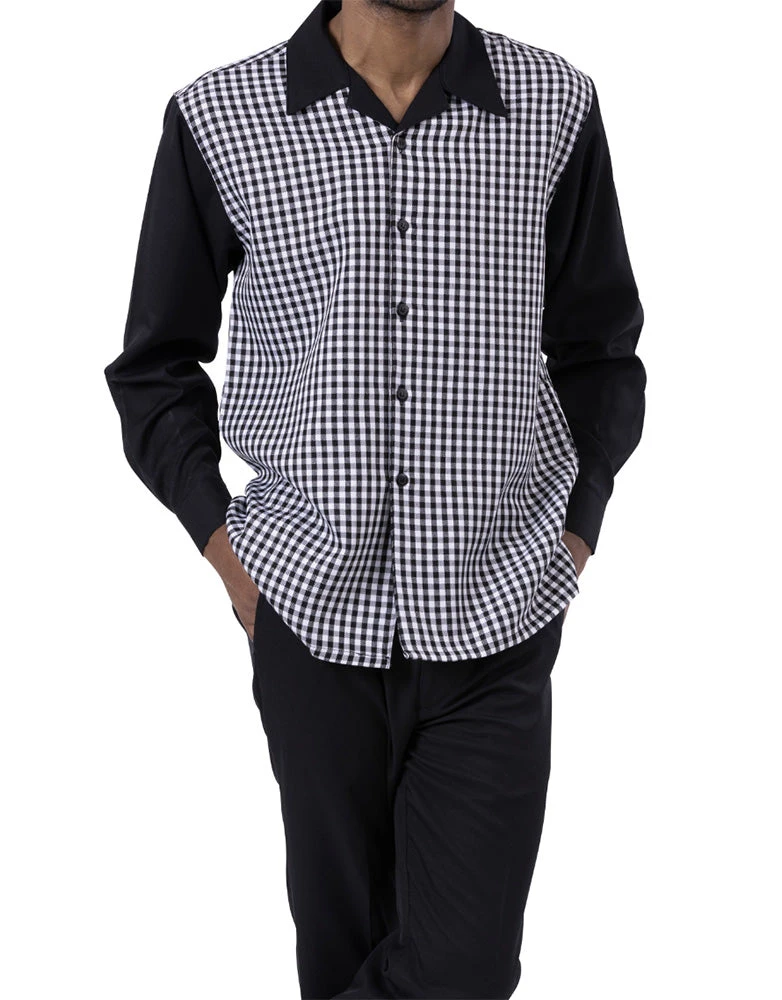 Black 2 Piece Long Sleeve Walking Suit Set Check Design